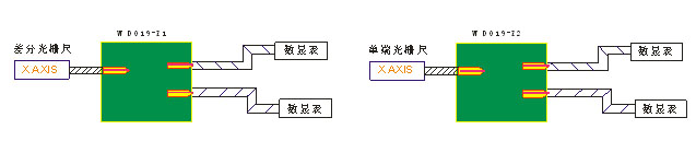 WD019-Z1和WD019-Z2為光柵尺輸出信號(hào)1to2轉(zhuǎn)接板。主要功能是把從光柵尺輸出的信號(hào)轉(zhuǎn)接為兩組互不干擾的信號(hào),其兩組輸出信號(hào)為單端、差分信號(hào)可任意選接。這樣可使光柵尺輸出的一組單端或差分信號(hào)供兩組數(shù)顯計(jì)數(shù)系統(tǒng)使用,方便對(duì)兩組數(shù)顯系統(tǒng)計(jì)數(shù)數(shù)據(jù)進(jìn)行對(duì)比。WD019-Z1為差分光柵尺輸入,WD019-Z2為單端光柵尺輸入。