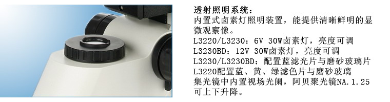 阿貝聚光鏡NA.1.25可上下升降 |