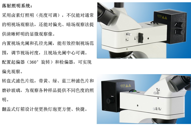 內(nèi)置視場光欄、孔徑光欄、濾色片轉(zhuǎn)換裝置、推拉式檢偏器與起偏器 |